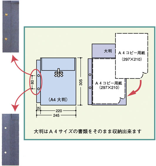 大判は外寸が大きいのため、通常のファイルに綴じると飛び出ます。