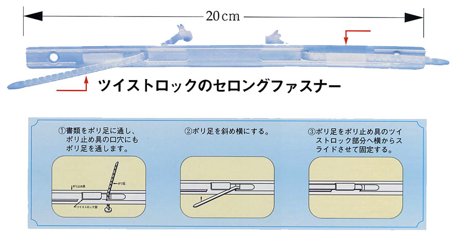 ファスナー足が12cm、最大とじ幅8cmまでファイルOK!
