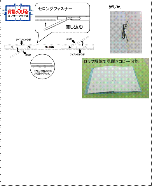 ・ポリ足が稼動し、とじ具に固定出来ます。 |