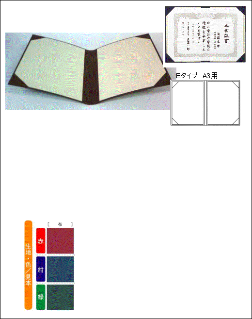 全面4コーナー仕様 2つ折りでA3サイズ証書が入ります |