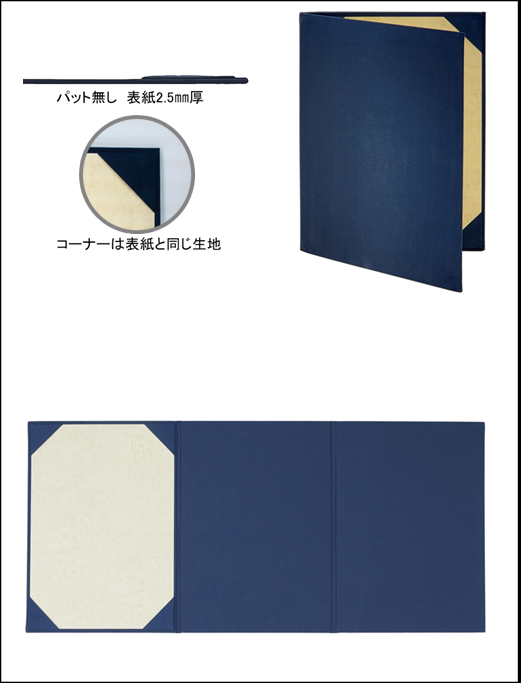 パット無し厚み2.5o、落ち着いた色の布生地表紙です。 |