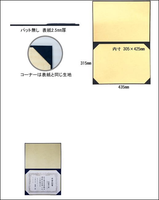 片面4コーナー仕様 A3サイズの証書が入ります。 |