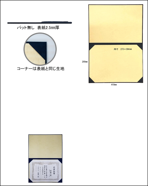 パット無し厚み2.5o、落ち着いた色の布生地表紙です。 |