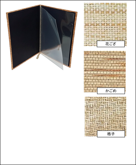 風合いのある生地で作成したメニュー帳シリーズです。 |